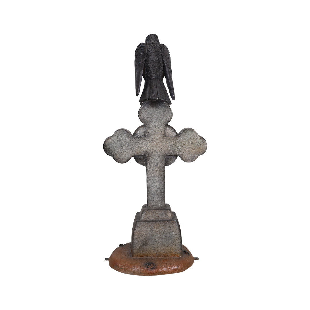 Graveyard cross fiberglass statue for Halloween decoration.
